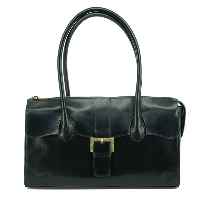 This Claudio Ferrici leather handbag is crafted from premium full-grain Italian leather with a rugged look. The bag has a decorative strap and antique brass buckle, but opens easily with a top zipp. Contrasting light stitching adds to the typical outdoor look. The strap is adjustable in length with a buckle.