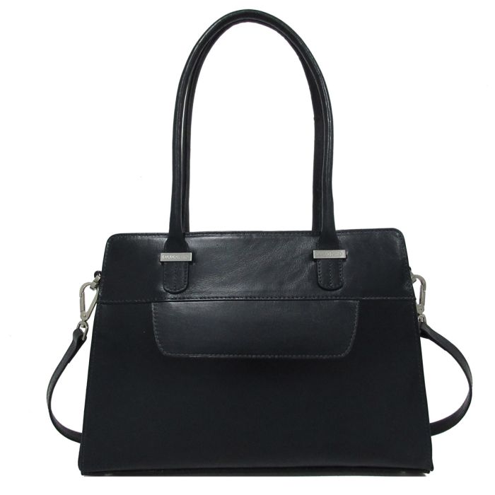 This elegant handbag from Claudio Ferrici is crafted from high-quality Italian leather. The sleek, rectangular design features two long handles, allowing the bag to be carried comfortably in the hand or over the shoulder. There is also a detachable and adjustable shoulder strap for added carrying convenience. On the front is a decorative flap, while the back has a zipper pocket added for safe storage of smaller items. The silver-tone details and neat stitching give the bag a modern, luxurious look. Inside, the main compartment offers plenty of space and several pockets for all your daily essentials.