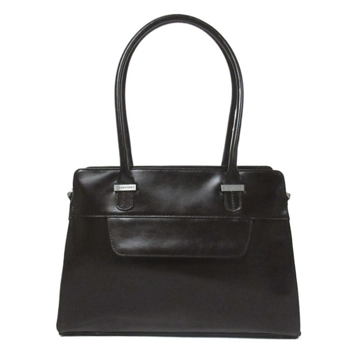 This elegant handbag from Claudio Ferrici is crafted from high-quality Italian leather. The sleek, rectangular design features two long handles, allowing the bag to be carried comfortably in the hand or over the shoulder. There is also a detachable and adjustable shoulder strap for added carrying convenience. On the front is a decorative flap, while the back has a zipper pocket added for safe storage of smaller items. The silver-tone details and neat stitching give the bag a modern, luxurious look. Inside, the main compartment offers plenty of space and several pockets for all your daily essentials.