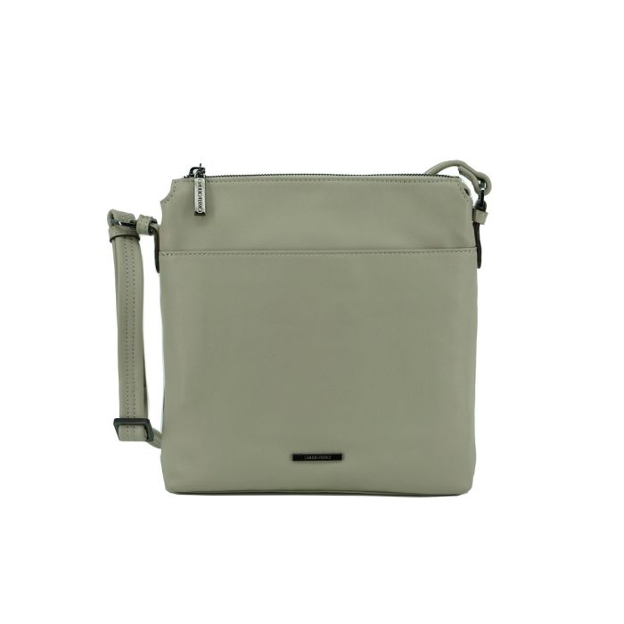 This bag can be used both as a shoulder bag and crossbody, thanks to the adjustable and detachable shoulder strap. The bag has a main compartment with a zipper, with enough space for personal belongings. On the front, the bag has a subtle metal logo accent, and on the back there is a handy zippered pocket for items that need to be quickly accessible.