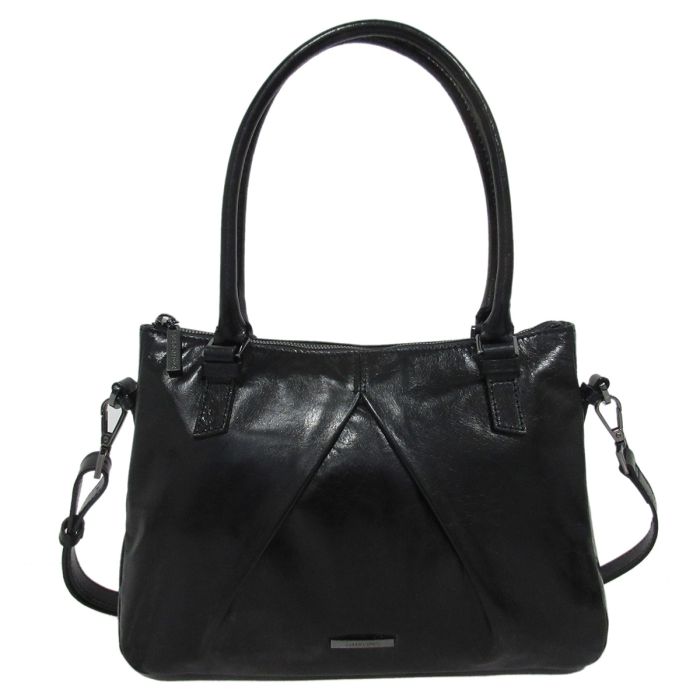 The front has a folded detail that gives the bag a modern and sophisticated look. Long shoulder strap is detachable and adjustable, and the handles make the bag comfortable to carry. At the back there is a zipper for storing small things.