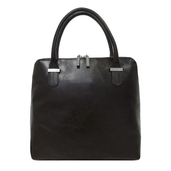 This classic Claudio Ferrici handbag is a timeless addition to any wardrobe. Made of classic, high-quality leather, the bag has an elegant look with a glossy finish. The design offers both handles for elegant carrying and a detachable, adjustable shoulder strap for versatility. The bag features a spacious zippered main compartment and multiple storage options. Subtle metal accents and the Claudio Ferrici logo give this bag a sophisticated look, perfect for everyday use, business or special occasions.