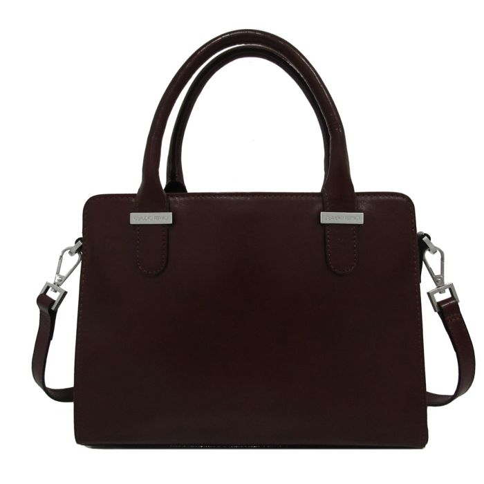 This handbag from Claudio Ferrici is made of classic leather. The two sturdy handles provide a classic look, while the removable and adjustable shoulder strap allows you to carry the bag as a shoulder or crossbody bag as well. With a spacious main compartment, several interior compartments and a zipper pocket on the back, you can store your essentials conveniently. The subtle metal details complete the look and give the bag a timeless, sophisticated look.