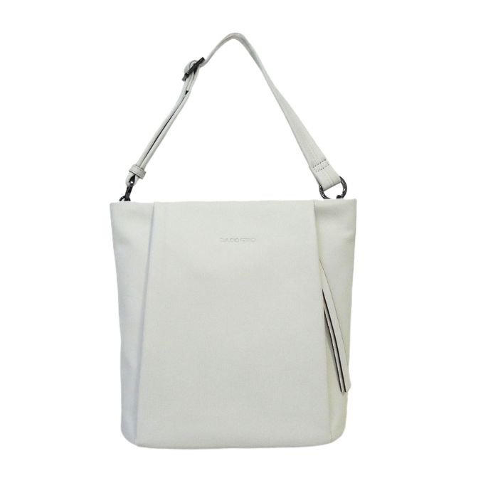 The bag features a sturdy shoulder strap with an adjustable buckle, allowing the length to be adjusted as desired. The strap is attached with metal rings, adding a modern touch.